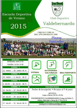 Un año más el Club deportivo Valdebernardo de AFUVEVA organiza la Escuela Deportiva de Verano Valdebernardo, este año su 8ª edición va dirigida a niños y niñas nacidos del año 2009 hasta 1998.