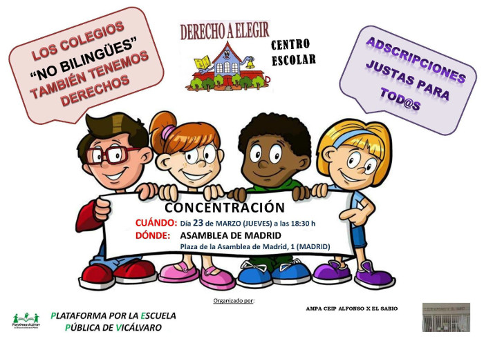 Mañana Jueves 23M# a las 18:30h frente a la Asamblea de Madrid la Plataforma por la educación pública de Vicálvaro nos convoca a esta concentración para presionar al gobierno de la comunidad de Madrid para que atienda las diferentes necesidades que son cada vez más urgente en la educación pública de nuestra región.